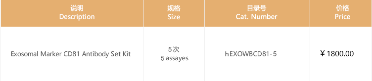 Exosomes are small membrane-bound vesicles that in recent years have emerged as important molecules for inter-cellular communication. Exosomes are produced during both normal and patho/physiological conditions, and cancer cells have been shown to secrete exosomes in greater amounts than normal cells. CD81 is a 26 kD non-glycosylated member of the tetraspanin superfamily (TM4SF),which is expressed on T and B cells, NK cells, monocytes, dendritic cells, thymocytes, endothelial cells, and fibroblasts.CD81 associates with several other cell-surface proteins in a multimolecular complex, including CD19, CD21, CD20, CD37, CD53, and CD82 in B cells, and CD4, CD8, and CD82 in T cells. CD81 is frequently expressed on exosome membranes used to characterize exosome populations from a variety of body fluids.
